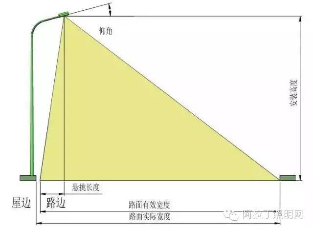 燈具的安裝高度(H)是燈具的光中心至路面的垂直距離。