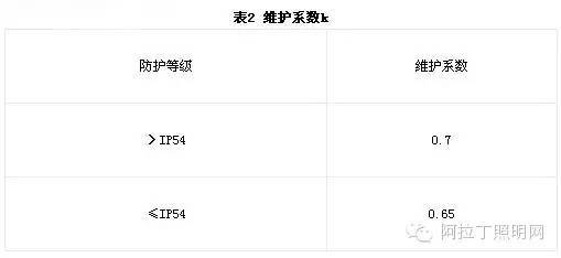注1:維護系數=光源的光衰系數*燈具污染的光衰系數。