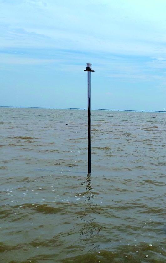 工作人員告訴記者,他們架設的路燈,順著海溝向海里延伸。據介紹,這條海溝深度在半米到一米之間?!奥涑钡臅r候,海水從海溝里往里退。海溝的底部比較堅硬,兩側都是齊腰深的泥灘。有經驗的趕海人,都是順著這一條海溝出入。兩側就是深達一兩米的淤泥,一旦陷入很難拔出腿來。”工作人員說道。