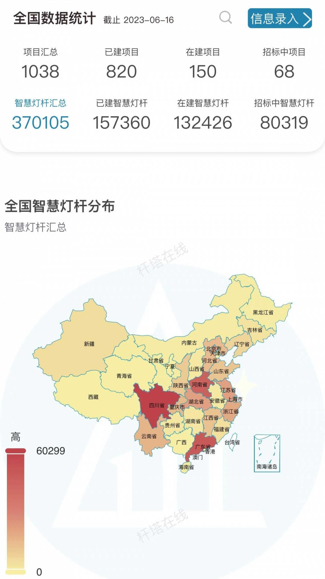首先,我們來看一下智慧燈桿建設的全國數據和山東省數據。